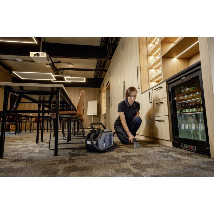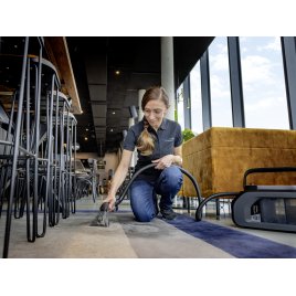 This portable battery-powered spray extraction machine can also be used for spot cleaning and stain removal, making light work of fresh or dried-on stains on textiles such as upholstered chairs, sofas, car seats and much more. The Puzzi 2/1 Bp removes all stains in no time at all thanks to its outstanding vacuuming performance, which also ensures fast drying times.
