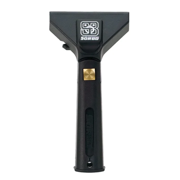 This Sörbo handle can be attached or removed at any point along the squeegee channel making it one of the quickest handles on the market. With a stainless steel pin/bar on the top made to secure to a safety line for high-rise and pole work.