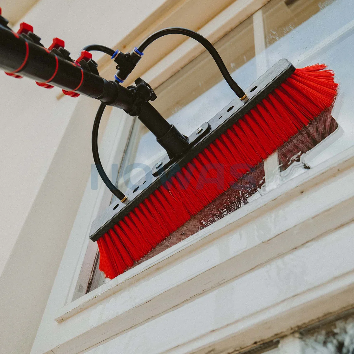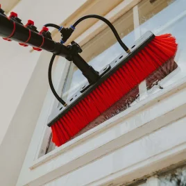 Double-trimmed bristles with spread outer fibers provide excellent surface contact, while shorter inner bristles engage under pressure for extra scrubbing power. Perfect for tackling large windows quickly and efficiently.
