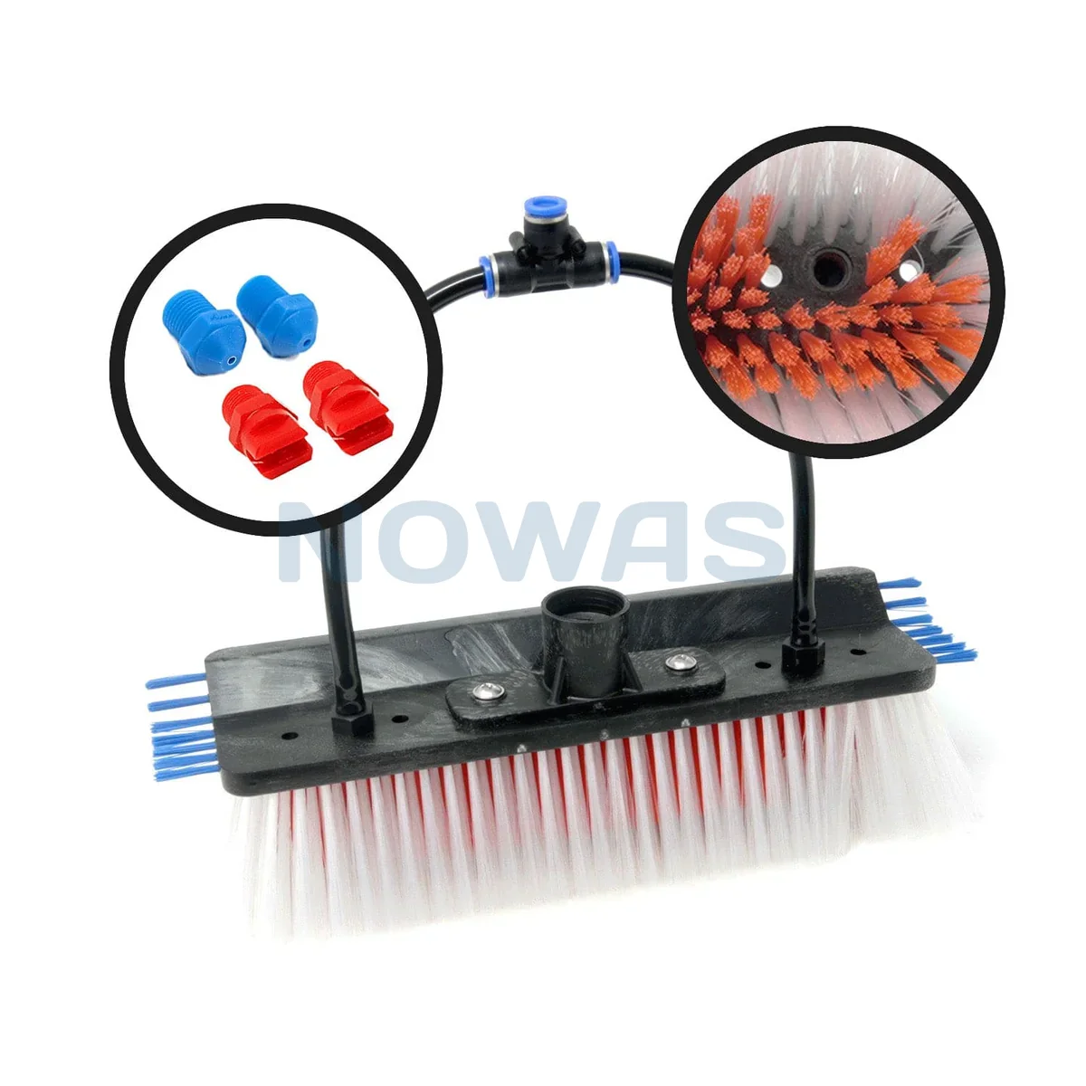 This brush features high-quality DuPont(R) nylon bristles and an angled brush shape designed to clean windows and frames simultaneously. Stiff red bristles inside and at the end provide a powerful scrubbing action while protecting the brush shape from contact with window frames and masonry. Perfect for professional exterior cleaning with good coverage and durability.