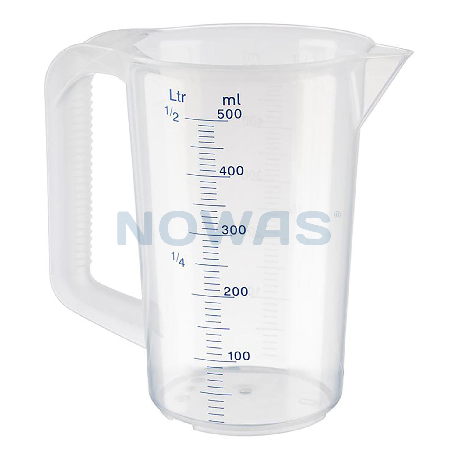 Measuring jug of 0.5 liters with handle and indication of Ml and Liter on the side. The perfect measuring jug for the professional kitchen, where an impact-resistant and durable solution is needed.