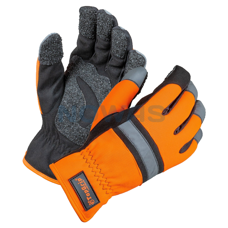 Lightweight yet durable JokaSafe TopGrip 5520 glove made of polyester, suitable for both hobby and professional use. The gloves orange back provides natural reflection, enhancing your visibility. The palm features sewn-on granulated TopGrip® material for a secure and reliable grip. These gloves are ideal for versatile outdoor work, warehouse tasks, and lifting jobs where a firm grip is essential.