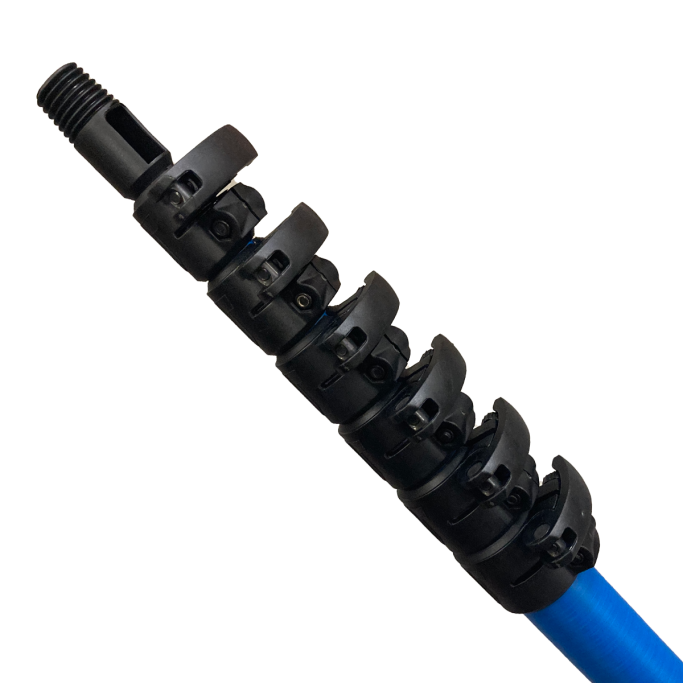 Water-fed telescopic poles designed for window cleaning with pure water systems (ultrapure water).