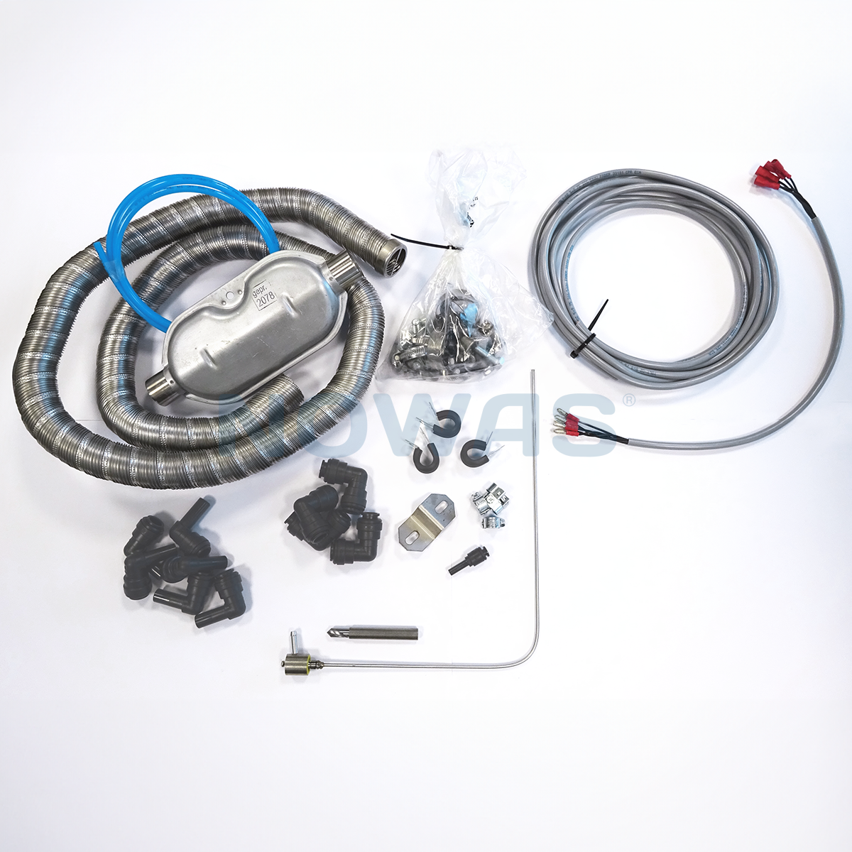 All necessary parts for installing the Purewash Hotwater PRO water heater in your car.
