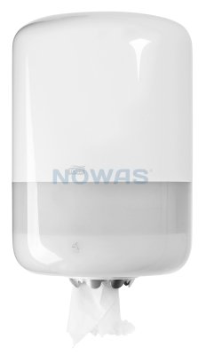 A hygienic and space saving dispenser for centrefeed rolls that is optimised for single hand dispensing.