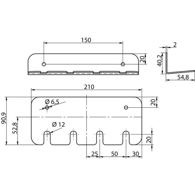 Wall holder for lances with KEW, 4 compartments, 40x210 mm, stainless steel