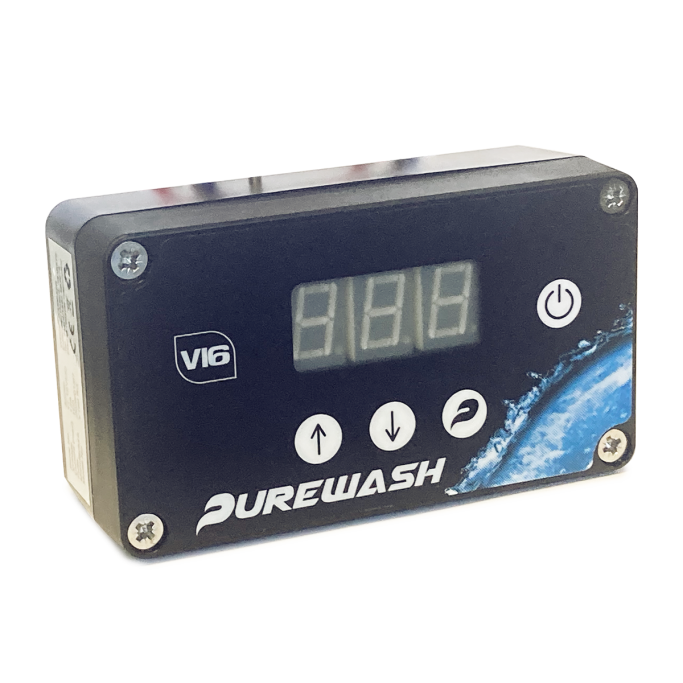 With battery monitoring, battery voltage indicator and low battery detection. With the PureWash control box there is no need to make settings inside the unit. Manufactured with a heavy duty waterproof housing, sealed to IP63 to prevent water ingress. Made of tough material, all electronics are protected against shock and moisture.