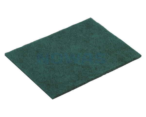 Green scouring nylon for scrubbing floors and other hard surfaces, as well as for removing limescale from tiles. This hand-scouring nylon is flexible and can get into all corners where floor treatment machines have to give up, and can be advantageously used on large surfaces as a supplement to the machines.