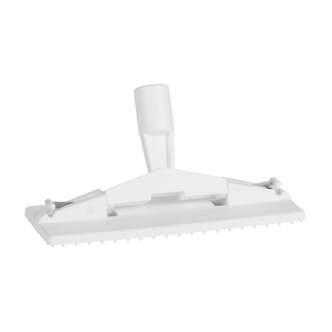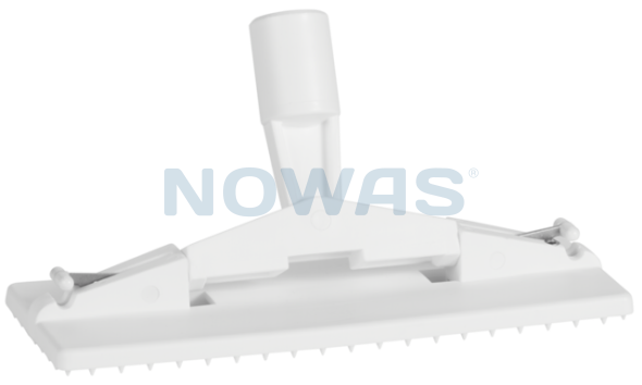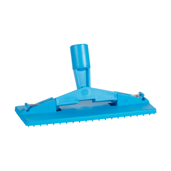 Attach cleaning pads with stainless steel hooks to this sturdy, durable and lockable scouring nylon holder. It is designed with a rotating thread that allows cleaning under equipment down to 12 cm above the floor. It can be used with all Vikan handles, allowing you to safely clean floors and walls, under equipment and on the outside of tanks/vessels.