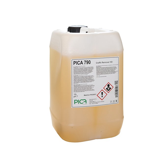 For graffiti removal on most types of surfaces. The product is particularly suitable for use on most types of hard and painted surfaces. Avoid using Pica 790 on plastic, rubber details and plexiglass. If the product does not dissolve the graffiti or shadows remain, Pica 141 can be applied.