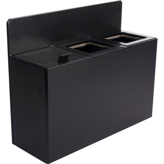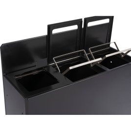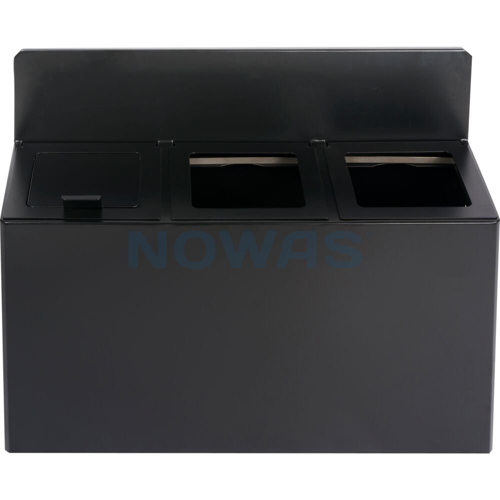This series of waste bins in black powder-coated steel is designed with flexibility and functionality in mind. The bins can be adapted to suit your needs and are available with 1, 2, 3, or 4 compartments - whether they are placed freestanding on the floor or wall-mounted.