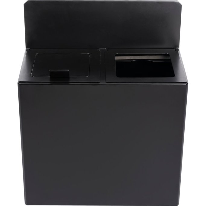 This series of waste bins in black powder-coated steel is designed with a focus on flexibility and functionality. The bins can be adapted as needed and are available with 1, 2, 3 or 4 compartments - whether they are to be placed freely on the floor or mounted on the wall.