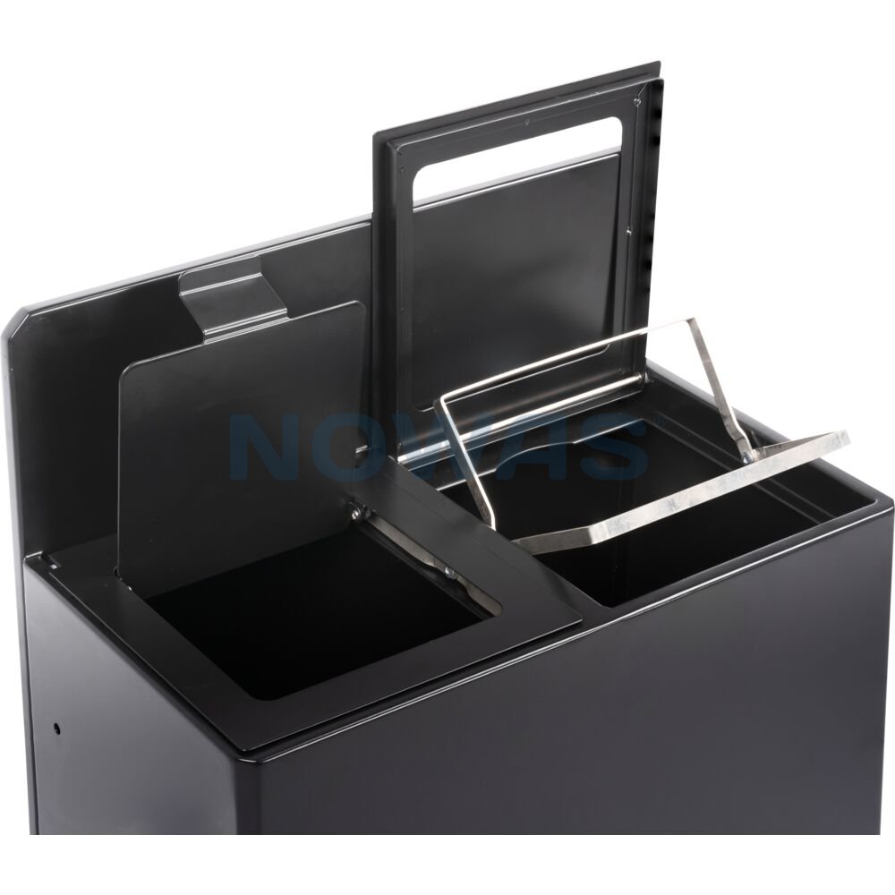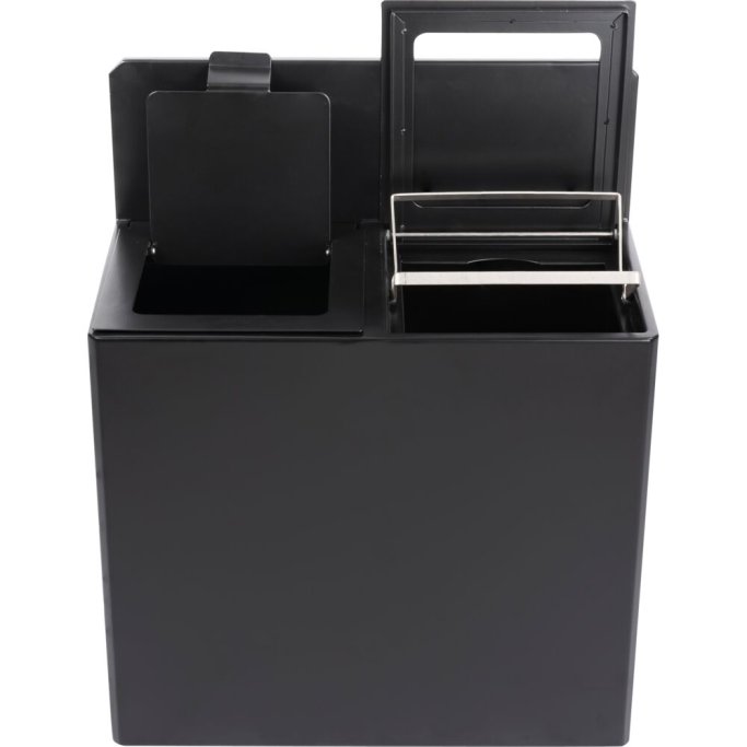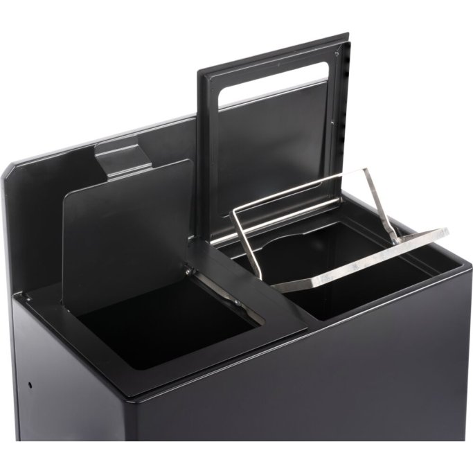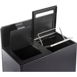 The waste bins are equipped with an integrated top plate that hides the bag holders. When replacing the bag, the top plate can be opened and held in the open position using magnets in the back plate, making work quick and easy. To reduce odour nuisance - for example from food waste - one of the fractions is equipped with a lid. However, the lid can be easily removed as needed.