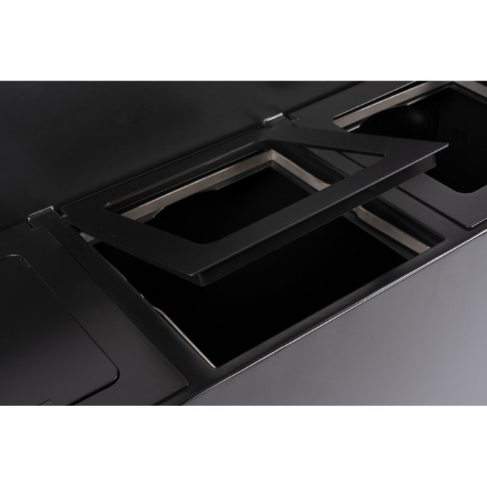 The waste bins are equipped with an integrated top plate that hides the bag holders. When replacing the bag, the top plate can be opened and held in the open position using magnets in the back plate, making work quick and easy. To reduce odour nuisance - for example from food waste - one of the fractions is equipped with a lid. However, the lid can be easily removed as needed.