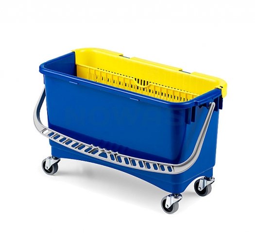 20 Ltr. Plastic Bucket w. plastic squeezer and wheels