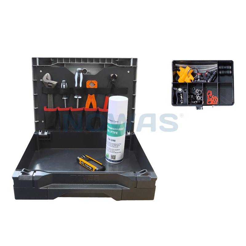 Complete toolbox for quick repair of washing systems. The toolbox contains all the most commonly used hand tools for repairing and replacing spare parts while on the go.