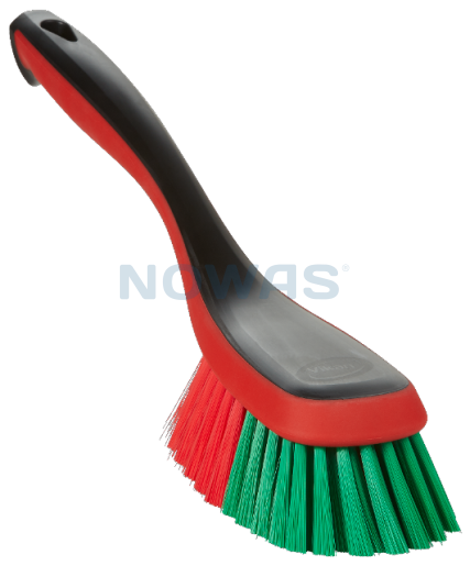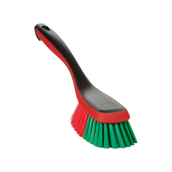 The brush block is made of strong black polypropylene. The red rubber edge provides a better grip and prevents damage to the vehicle. Ideal for glass, stainless steel, plastic, paint, radiator grilles and rims. The long bristles easily reach all nooks and crannies. The thin, straight bristles are made of soft polyester and are dense enough to withstand water and cleaning agents, while being gentle on delicate surfaces.
